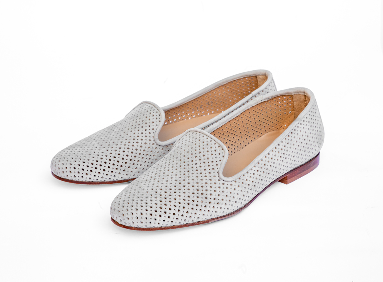 Babouche daim gris perforé 169.-