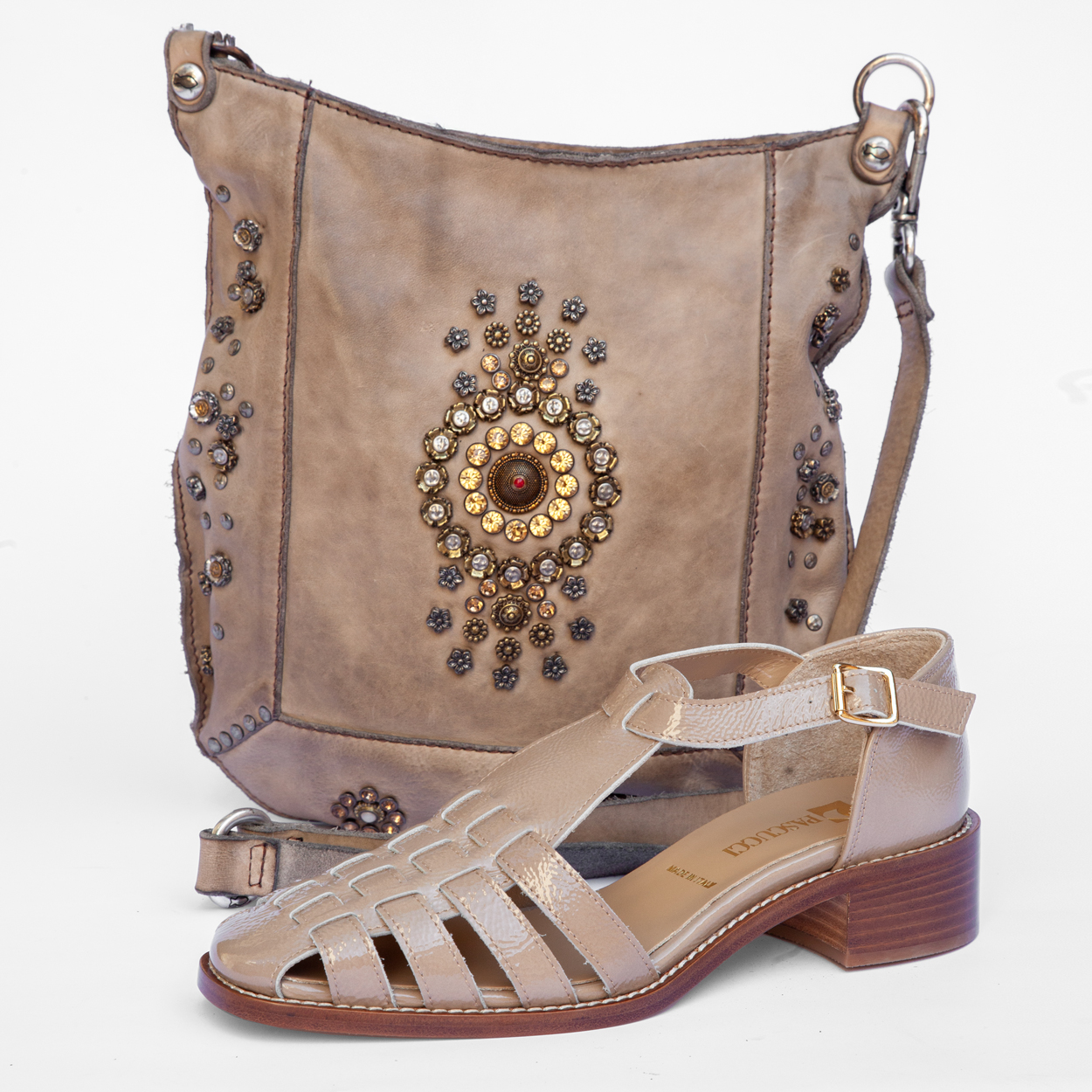 Sac Campomaggi 389.- / Sandale vernis poudré 189.-